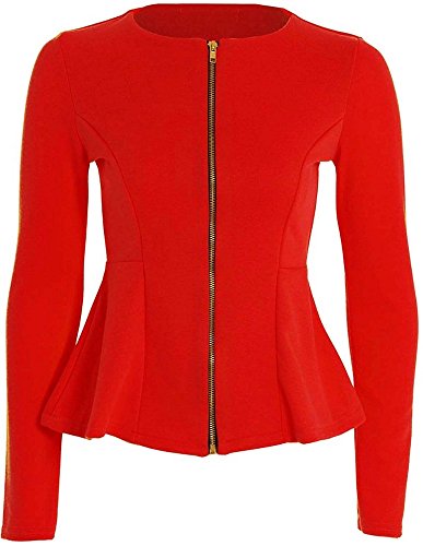 My Fashion Store Nuovo Donna Tinta Unita a Maniche Lunghe Zip Peplum Balza Tailored Blazer Giacca Top Taglia UK 8 – 24 Red XL/XXL 52-54