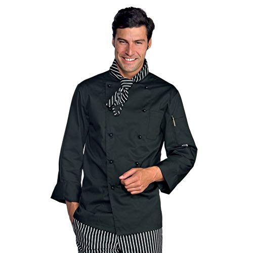 Isacco Giacca Cuoco Classica Nero, Nero, L, 65% Poliestere 35% Cotone, Manica Lunga, Bottoni antipanico - Tessuto 195 gr/m²