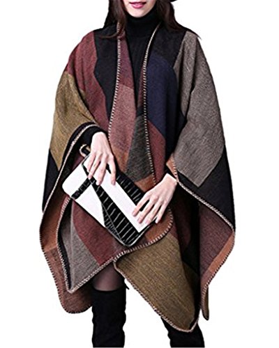 donne cashmere oversize coperta poncho Mantelle scialle cardigan maglione cappotto POCH#8 Taglia unica