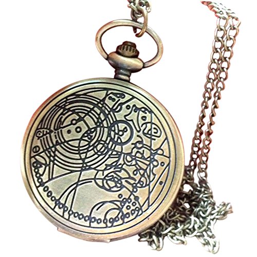 Rosepoem orologio da tasca antico Orologio da taschino di bronzo vintage Doctor Who Orologio da tasca al quarzo retrò Numeri arabi orologio da tasca con catena per uomo