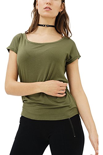 trueprodigy Casuale Donna Maglietta Uni Semplice, Abbigliamento Urban Moda Girocollo (Manche Courte & Slim Fit Classic), Top Blusa Moda Vestiti Colore: Oliva 1082541-0516-XS