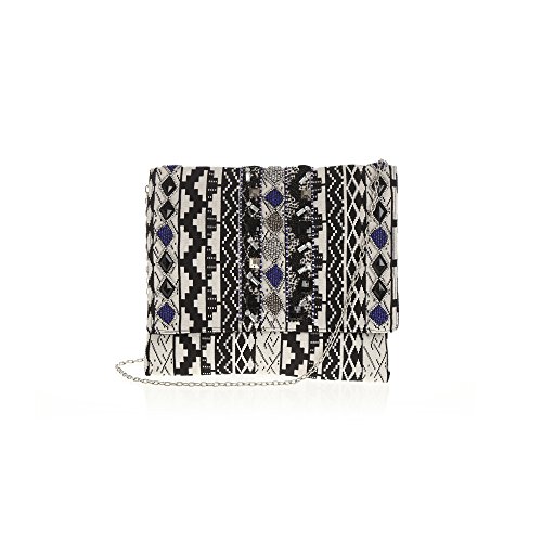 VENCA Borsa da party design jacquard ricamato con perline - 014737,BIANCO/NERO,UNICA