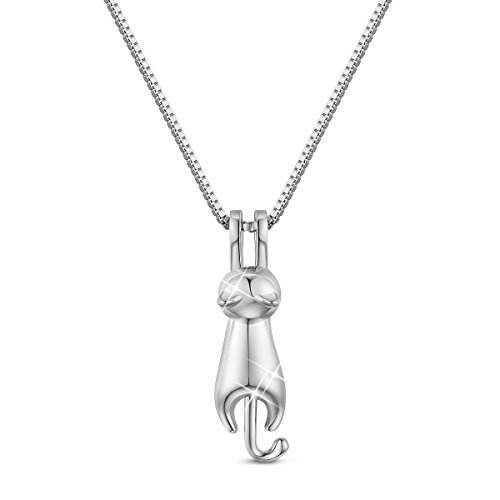 SHEGRACE Collana a Ciondolo Gatto Carino per Donna in Argento 925 con Pendente a Forma di Gattino, Regalo della Ragazza, 400 mm, Regolabile