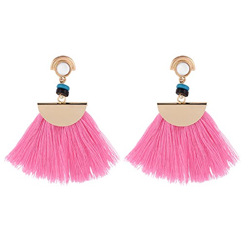 Orecchino, 4Colors fatto a mano lungo nappa ciondola gli orecchini delle donne moda gioielli con frange(rosa)