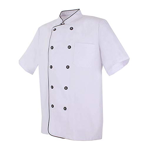 - Uniforme da cucina per uomo a manica corta, due file con cinque bottoni su ciascun lato, dettaglio tasca sul lato sinistro della divisa.