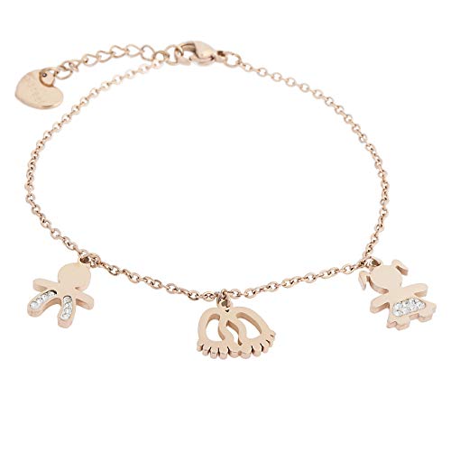 inSCINTILLE Sweet Child Bracciale in Acciaio Rosa con Bimbi e Piedini