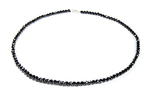 Collana con pietre preziose in spinello a forma sferica sfaccettata, Ø 3 mm, chiusura in argento 925 nero