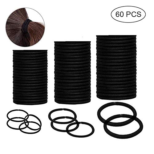 Pawaca 60 pezzi nero capelli fascette 5 mm 4 mm 2 mm, elastici per donne ragazze capelli spessi, nero Ponytail titolari fascia elastici per capelli, accessori per capelli ricci