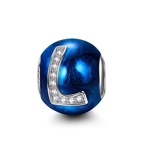 NINAQUEEN Charm Adattarsi Pandora Il miglior Regalo per la Mamma I Gioielli della Mamma Lettera L Blu Argento 925 Zirconio Smalto Perline
