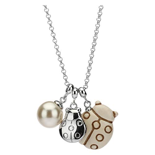 THUN - Collana con Ciondoli Coccinella - Linea Current - Gioielli Donna - Ottone Rodiato, Ceramica Smaltata e Perla