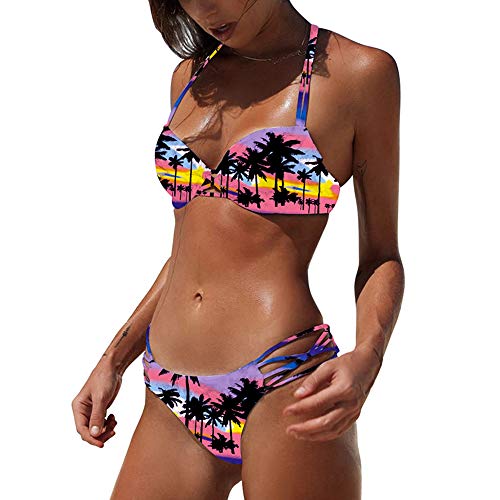 IEUUMLER Donna Sexy Imbottito Bikini Set 2 Pezzi Beachwear Costume da Bagno Swimwear Costumi Balneari IE070 (Muti Color, XL)