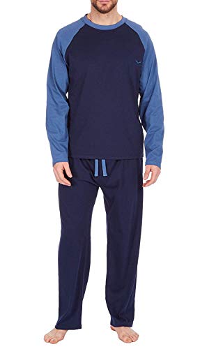 Insignia Uomo Set Pigiama Top Manica Lunga & Pantaloni Pigiama di Cotone - Navy Midblue, XL