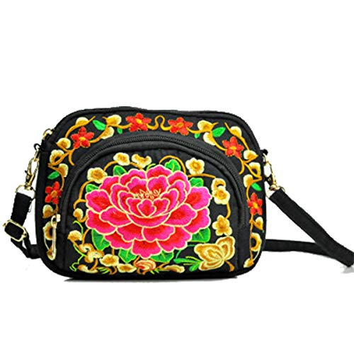 ZoONAI, borsetta da donna con ricamo floreale a tracolla, piccola tela per cellulare, Rosso (Fiore rosso.), Taglia unica