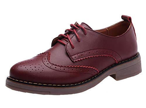 DADAWEN, Scarpe da Donna in Pelle Oxfords Brogue, Rosso (Wine Red), 40 EU