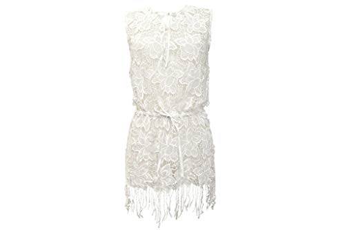 Verdissima, Top Interamente Realizzato in Pizzo con Coulisse in Vita e Frange (Non Foderato), Colore Bianco, tg. L