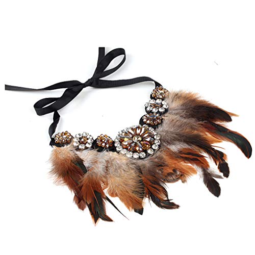 Fodattm - Collana Vintage con Ciondolo a Forma di Piuma, in Stile Tribale Bohémien, con Piume e Nappe, da Donna e Materiale Non Metallico, Colore: Marrone, cod. HC00906B-XL-1PC