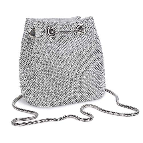 HARPIMER Pochette Donna Borsa da sera, Borse Cerimonia Eleganti Clutch Piccolo strass Borsa a Catena Per Nozze Festa Matrimonio (Argento)