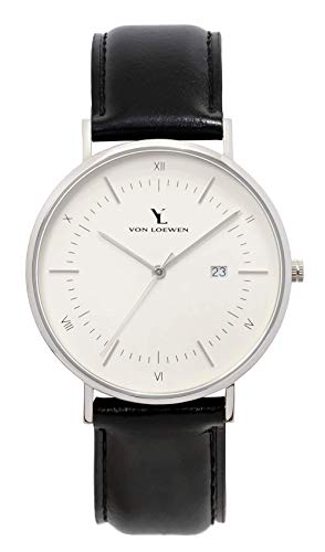 LOEWEN Orologio da polso in pelle Classic Zion (uomo e donna) – Orologio con pelle (argento), cinturino in pelle in nero
