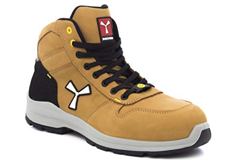 PAYPER Get Force Mid Scarpe Antinfortunistica Uomo per Lavoro di Sicurezza S3 in Fiore bovino Traspiranti Resistenti abrasione Ammortizzatore Giallo Aspen (44)