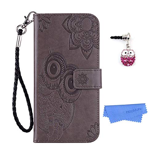 HopMore Compatibile con Cover Huawei Y9 Prime 2019 (Huawei P Smart Z) Silicone Morbido con Pelle Disegni Gufo Mandala Custodia Antiurto Portafoglio Protettiva Custodie Brillante Case Leather - Grigio