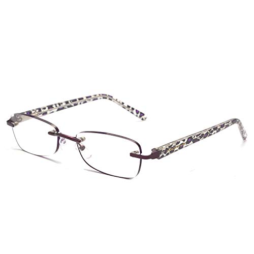 Occhiali da lettura alla moda senza cornice,Amorays occhiali da lettura leggeri anti-blu, occhiali da lettura di design con montatura piccola, incluso blu rosso viola (porpora, 2.00)
