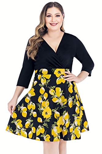 KILOLONE Abiti da Donna con Scollo a V Floreale Taglie Forti Abito Casual Attillato a Trapezio con Maniche a 3/4